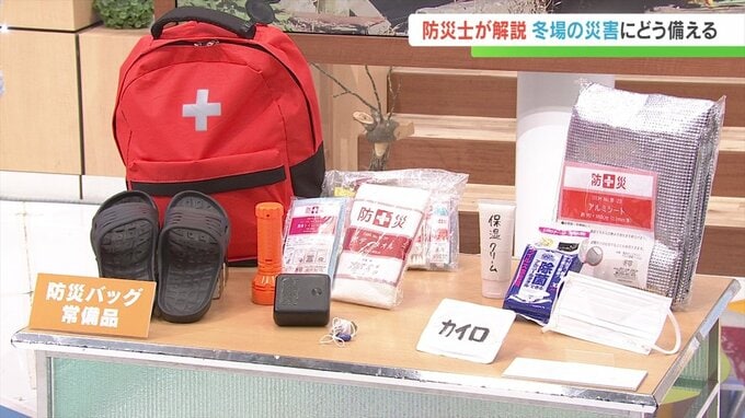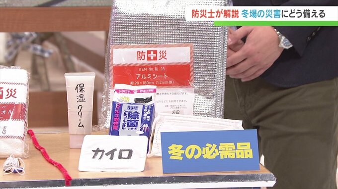 乾燥が進みますので感染症のリスクがあります。ですからこういう暖を取れるカイロやマスク、除菌シート。乾燥対策として保湿クリームも冬の対策として入れておくのが重要かと思います。