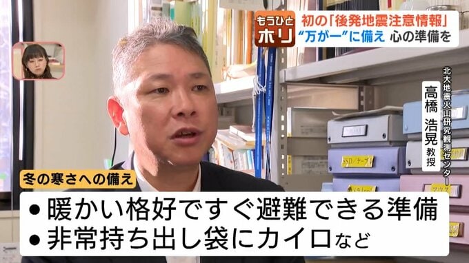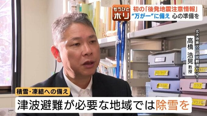 堀内キャスター)地震のメカニズムに詳しい北海道大学・大学院の高橋浩晃教授に後発地震注意情報と、冬場の備えのポイントを聞きました。