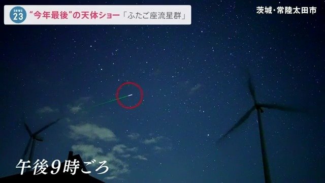 茨城県・常陸太田市で午後9時ごろ撮影された映像では、流れ星が左から右に流れていく様子がはっきりと映りました。冬の澄んだ空に降り注ぐ流れ星。ふたご座流星群は14日の夜、ピークを迎えました。
