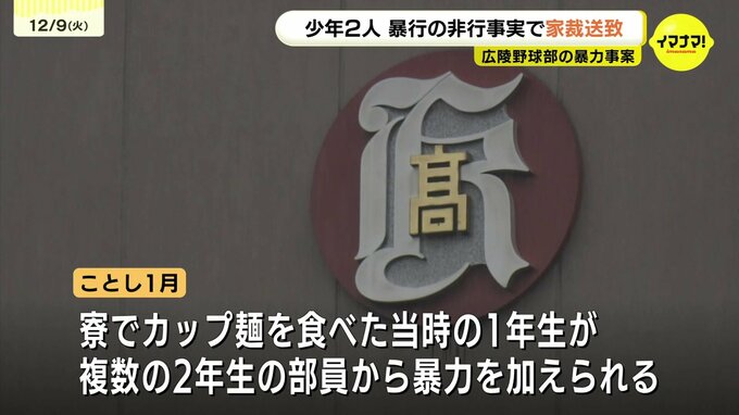 広島県の広陵高校・硬式野球部で起きた暴力事案で、広島地検は9日、少年2人を広島家庭裁判所に送致しました。