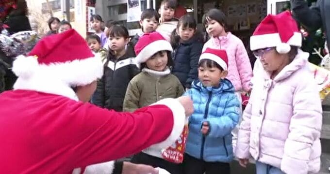 乗車後にはお菓子のプレゼントを受け取った子どもたち。一足早いクリスマス気分を満喫したようです。