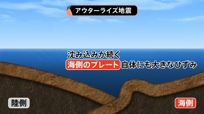 プレートの境界では“アウターライズ地震”という地震が起こる可能性もあるといいます。