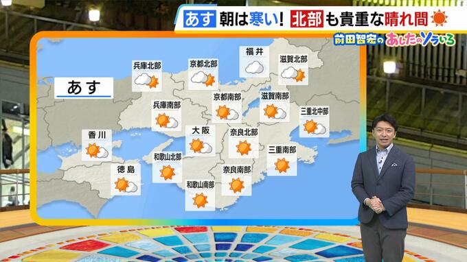 12月10日(水)の近畿地方は、日本海側にも貴重な日ざしが。一日を通して、空気はこの時期らしい冷たさとなりそうです。 近畿地方は移動性の高気圧に覆われるでしょう。前日はしぐれていた北部も含め、広く晴…