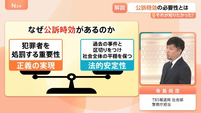 犯罪者・被害者も含む社会全体に、平穏と区切りをつけることが必要だと、そのバランスを取り決めているのが「公訴時効」の考え方とされています。