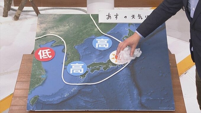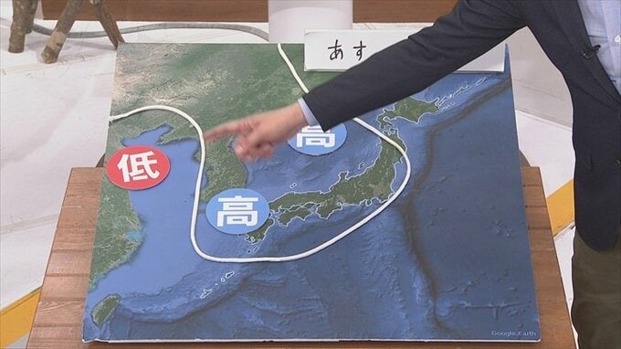 あすの天気ですが、高気圧に覆われる形となりまして基本的には晴れの天気です。