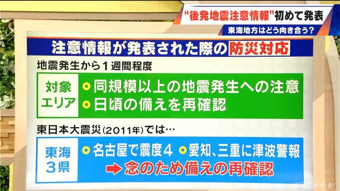 東海3県の皆さんも対象エリアではありませんが、2011年の東日本大震災を思い出してください。名古屋で震度4の揺れを観測し、愛知や三重に津波警報が発表されました。