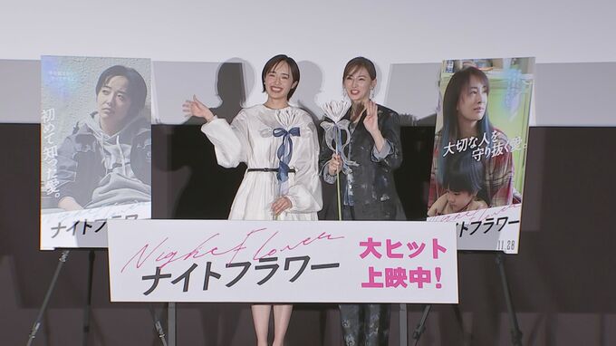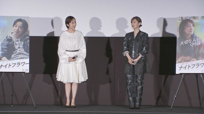 俳優の北川景子さんと、森田望智さんが9日、映画『ナイトフラワー』公開御礼舞台挨拶に登壇しました。