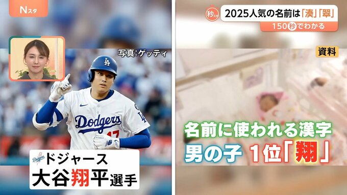 また、名前に使われる漢字のランキングでは、男の子はドジャースの大谷翔平選手の「ショウ(翔)」の字が1位でした。トップになるのは5年連続です。
