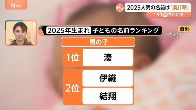 明治安田生命が、2025年に生まれた「子どもの名前ランキング」を発表しました。