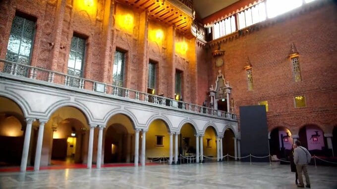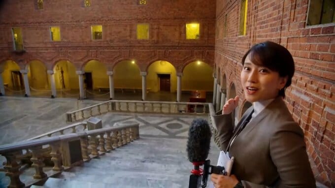 「ノーベル賞の晩餐会はストックホルム市庁舎の『青の間』で執り行われます。1300人を超えるゲストが集うということです」