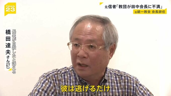 “元妻による多額の献金で長男が自殺に追い込まれた”と訴えている橋田達夫さんは、田中会長の辞任について、このように話します。