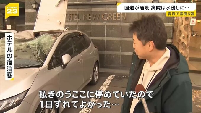 「地震の影響でホテルの看板の一部が落下し、宿泊客の車に直撃しています」