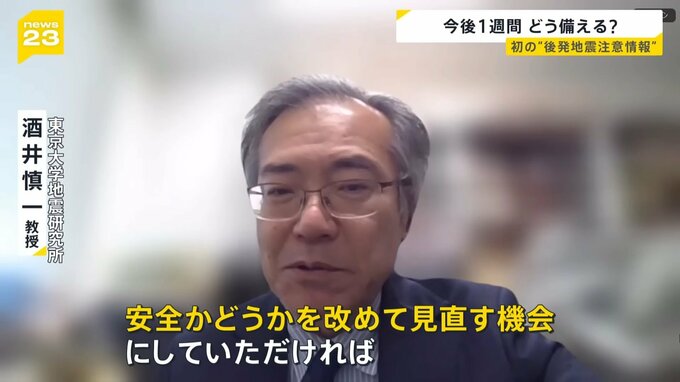 「(過去に)後発地震があると言っても、実際はたくさん見つかっているわけではない。身の回りの状況をもう一度確認して、安全かどうかを改めて見直す機会にしていただければ」