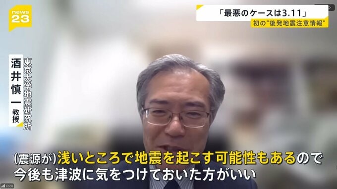 「後発地震ということを考えると、(震源が)浅いところで地震を起こす可能性もあるので、今後も津波に気をつけておいた方がいい」