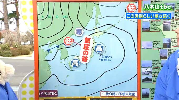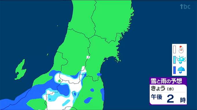 宮城県内では、上空の寒気が抜けないため、この時期らしい寒さが続いています。今日は次第に天気が回復する見込みですが、晴れ間が出ても気温はあまり上がらないため、外出の際は暖かい服装でお過ごしください。