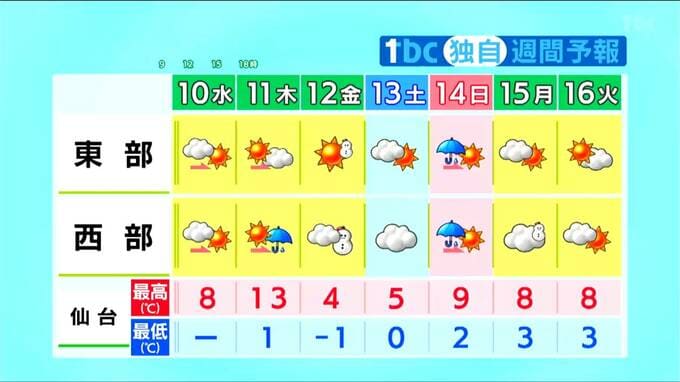 ■青葉区東部:最高気温8℃ ■青葉区西部:最高気温6℃
