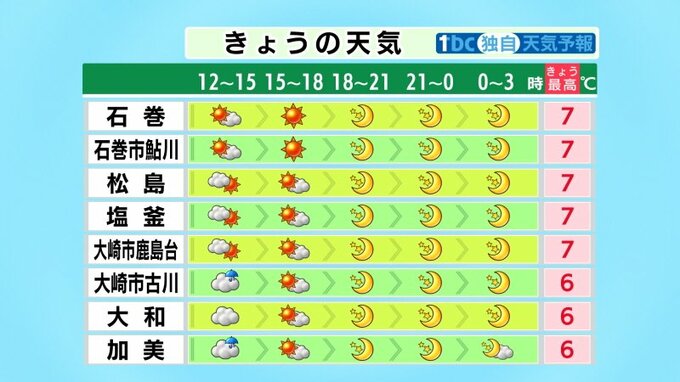 ■石巻:最高気温7℃ ■石巻市鮎川:最高気温7℃