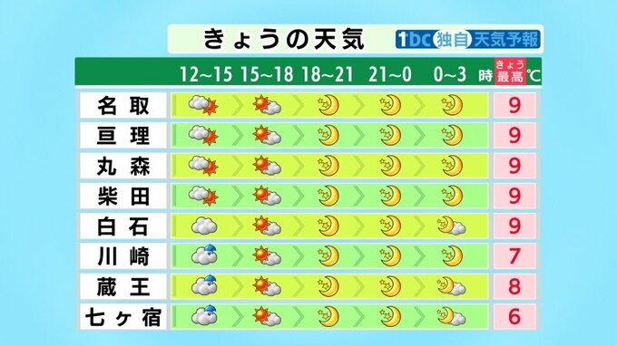 ■白石:最高気温8℃ ■川崎:最高気温7℃