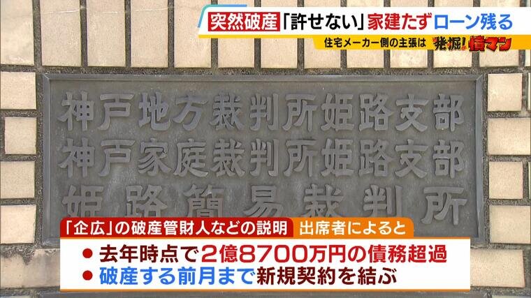 ただ、今年8月、神戸地裁姫路支部で開かれた債権者集会の出席者によりますと、破産管財人などからは去年時点で会社が2億8700万円の債務超過となっていた一方、破産する前の月まで新規契約を取っていたと説明があったといいます。