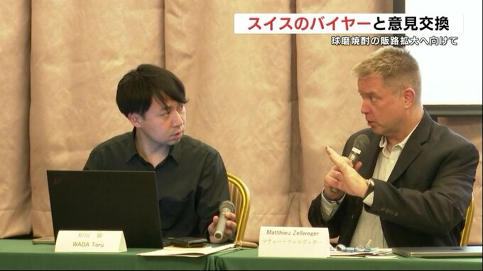 球磨焼酎の蔵元にスイスのバイヤーが訪れ、販路拡大について意見を交わしました。9日夜、人吉市のホテルで開かれた意見交換会には、スイスのバイヤーであるマチュー・ツェルヴェガーさんと和田徹さんの2人が出席し…
