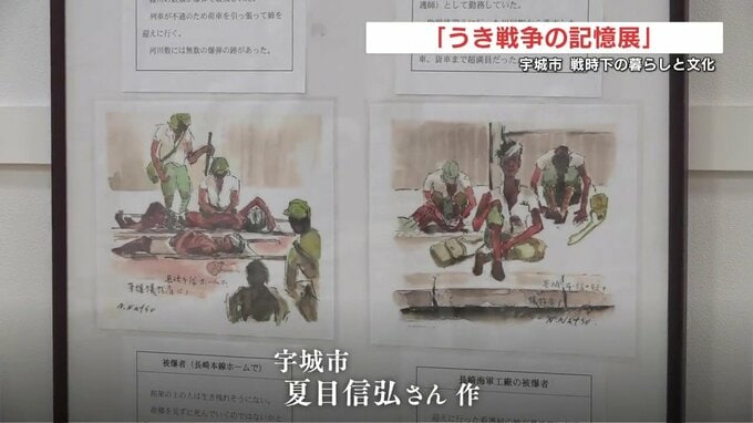 展示では、宇城市の夏目信弘さんが描いた、空襲の悲惨な様子や破壊された橋などの絵画を見ることができます。