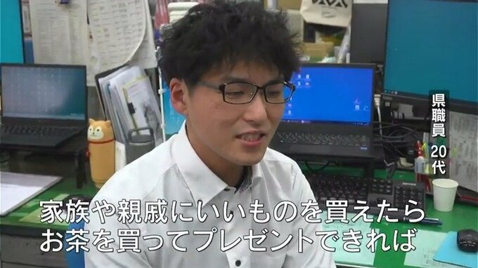 (県職員 20代)「さっき確認したけど思ったより上がっていてびっくり。家族や親戚にいいものを買えたら、お茶を買ってプレゼントできれば」