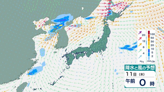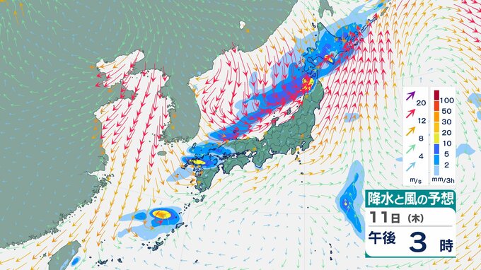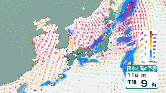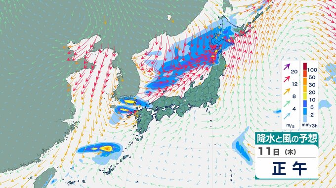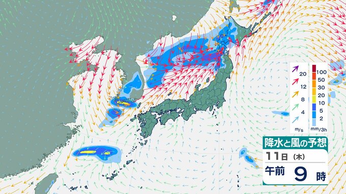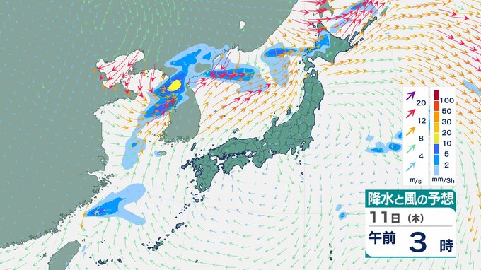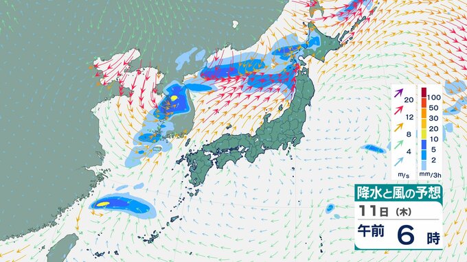 【大雨情報】東北日本海側北部 多いところで1時間に20mmの降雨予想 11日朝から夜遅くにかけて土砂災害に警戒を 【雨風シミュレーション】 チューリップテレビ 2025年12月10日(水) 12:04 国内 天気 11日(木)の雨と風のシミュレーション