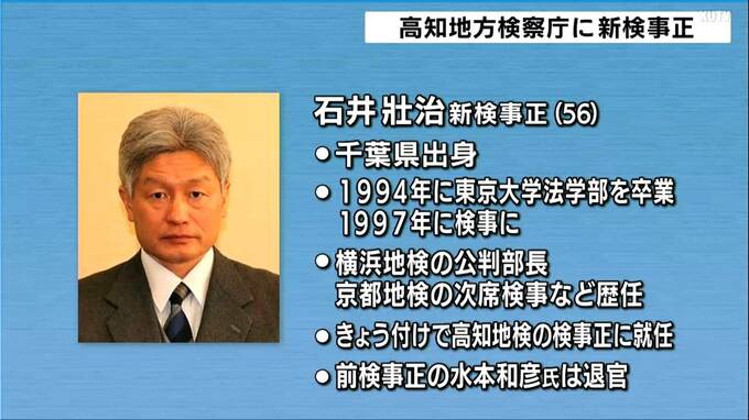 高知地方検察庁のトップにあたる「検事正」に、京都地方検察庁の次席検事、石井壯治(いしい・たけじ)氏が新たに就任しました。石井壯治新検事正は千葉県出身の56歳で、1994年に東京大学法学部を卒業し、1997年に…