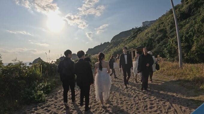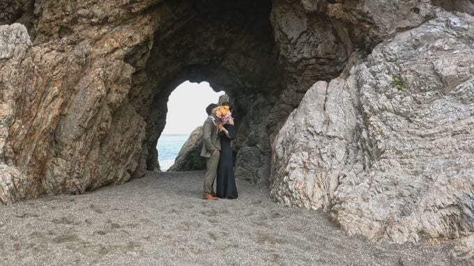 名古屋からやって来た川合確さん(28)と友希さん(30)。この日は、結婚式用に写真と動画を撮影。
