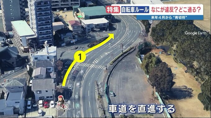 熊本県警察本部 交通企画課 山本貴廣課長補佐「左折矢印は、道路交通法第35条の『指定通行区分』という交通規制で、自転車はこの対象から除かれています。自転車は矢印に従わずに、左折レーンを直進することができます」