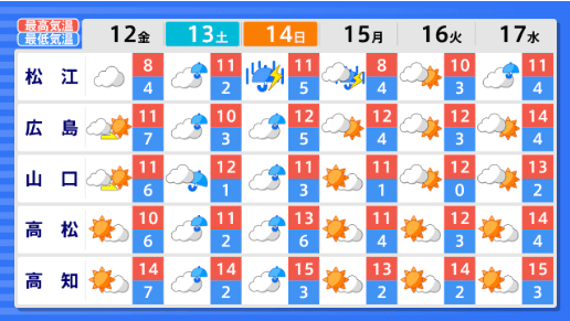 【早期天候情報】中国地方では12月17日頃~「著しい高温」となる可能性 この時期としては "10年に一度レベル" 全国の天気を地方ごとに 気象庁 テレビユー山形 2025年12月10日(水) 15:00 国内 ■全国の天気を地方ごとに(画像) 画像はTBS NEWS DIG Powered by JNNより 画像ありの記事を最初から https://newsdig.tbs.co.jp/articles/-/2339884?display=1