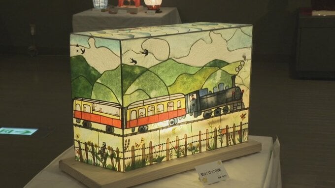このうち、98歳の遠藤都代子さんの作品「里山トロッコ列車」は、里山の風景を色彩豊かに表現していて、両面で春と秋の景色を楽しめるのも特徴です。