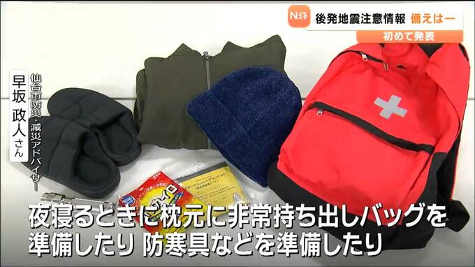 その上で、夜寝るときに枕元に非常持ち出しバッグを準備したり防寒具などを準備したり、いつ緊急のお知らせが届いても分かるように、携帯電話やラジオ、スマートフォンを準備する。あと、家族全員同じ部屋で休むことで、より安心できるかと思う」