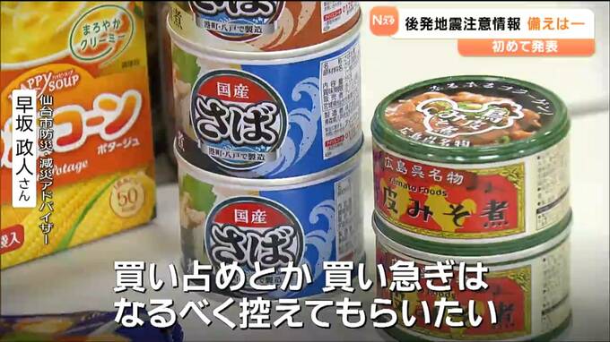 「あと、備蓄品などを確認して、ちょっと足りないという人は買い求めてもらうが、この1週間以内に絶対地震が起きるわけではないので、買い占めとか買い急ぎはなるべく控えてもらいたい」