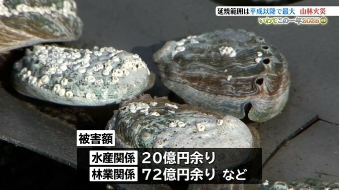 市によりますと今回の山林火災での被害額は、停電による養殖アワビの被害や定置網の焼失など水産関係が20億円余り。
