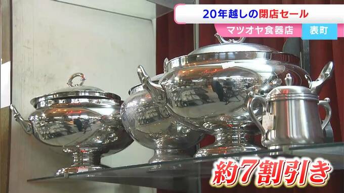 店内には、レトロな食器や花瓶のほか、プロ仕様の調理器具など合わせて数千点が並び、20年前の価格から約7割引きで販売されています。