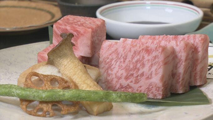 摺上亭大鳥・赤井圭三総料理長「(福粕花は)脂があるんだけれどもあっさりしている。今は溶岩焼きとステーキを提供しているが、いろんな調理方法を試作しているので食べ方の提案をできれば」