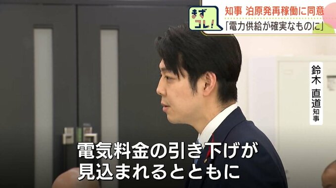 「再稼働により、道民のみなさまの生活や道内経済に大きな影響を与えている電気料金の引き下げが見込まれるとともに、電力需要の増加が想定される中で安定した電力供給が確実なものとなる」