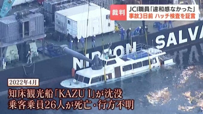北海道知床半島沖の観光船沈没事故の裁判で、事故の3日前に船の検査を行った職員は沈没原因のハッチについて「検査段階では違和感を感じなかった」と証言しました。