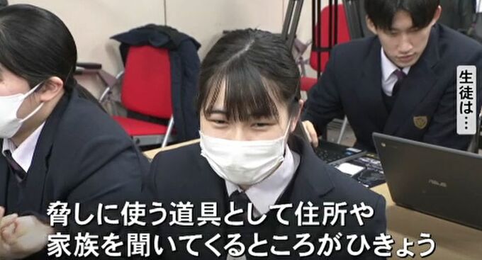 生徒「今SNSが無きゃ何もできない時代なので、そういうのを逆に使ってきていろんな人がこういう感じで騙されるんやなと思って、自分も気をつけたい」