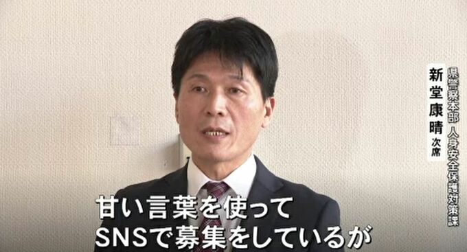 石川県警察本部・人身安全保護対策課・新堂康晴次席「甘い言葉を使ってSNSで募集をしているが犯罪に加担させられたり取り返しのつかないことになるのでそういったものには十分注意していただきたい」