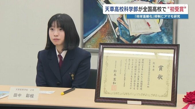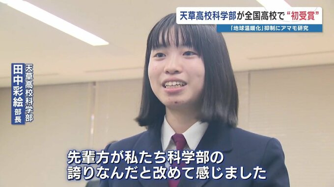 天草高校科学部 田中彩絵部長「代々続けられてきた研究が、評価していただけて、本当に嬉しかったですし、先輩方が私たち科学部の誇りなんだと改めて感じました」