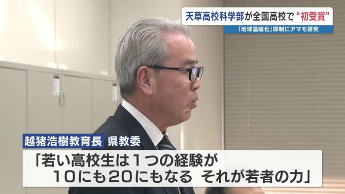 今日(12月10日)、受賞の報告を受けた熊本県教育委員会の越猪浩樹教育長は「若い高校生は1つの経験が10にも20にもなる。それが若者の力」と話し、「これからも頑張ってほしい」と激励しました。
