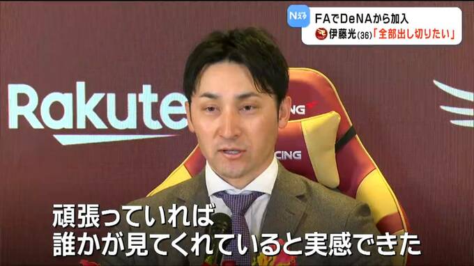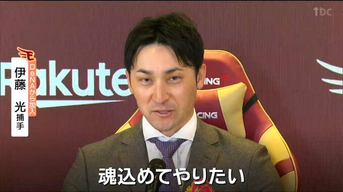 海外FA権を行使し、DeNAから楽天に加入した伊藤光選手が入団会見に臨み、新天地で戦う思いを語りました。