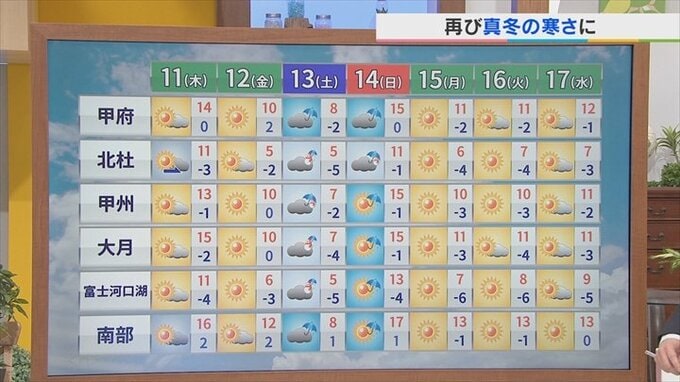 あさっての最高気温はあすと比べて5℃前後低くなります。北杜市では晴れても