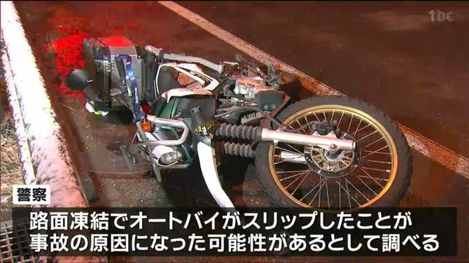 14日夜、仙台市内の国道で転倒したオートバイの男性が、後ろからきたトラックにはねられ死亡しました。警察は、路面凍結によるスリップが事故の原因になった可能性があるとして調べています。14日午後10時15分頃、…