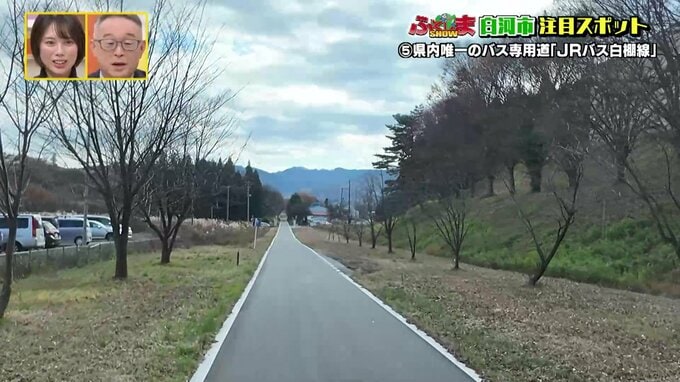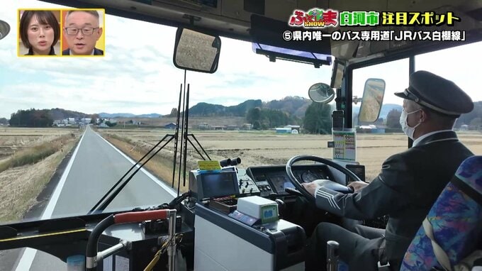 「あのバスは、白河駅から棚倉方面へ向かう当社の一般路線バス『白棚線(はくほうせん)』です。白棚線は一部、専用道路で運行しています」