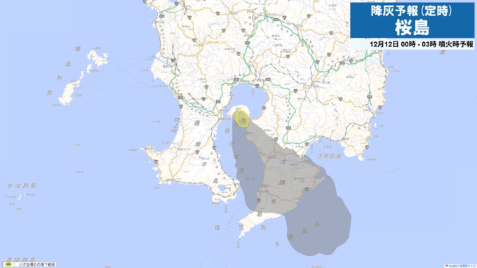 桜島降灰予報(定時)灰が予想されるエリアと時間帯を確認