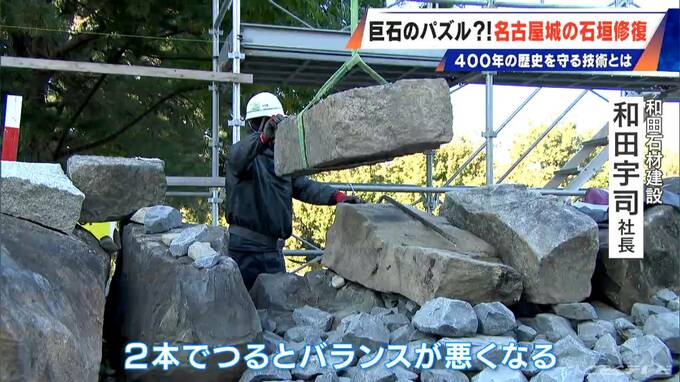 「1本でつるのは、石垣の石は基本的に形が決まった物ではないので、2本でつるとバランスが悪くなる」