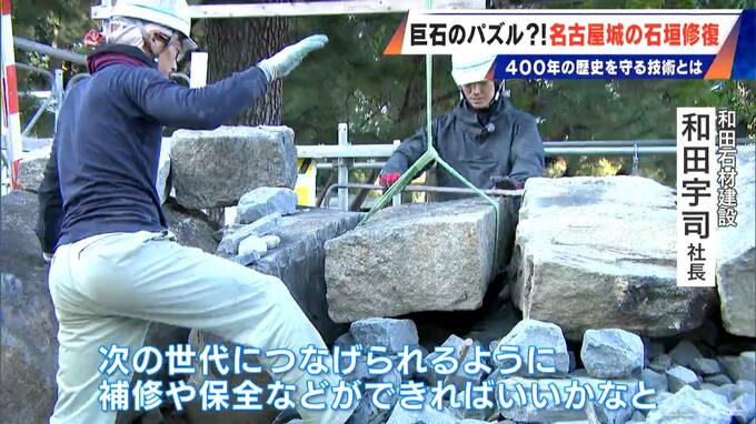 実は400年前の築城の際、人力だけでわずか半年で作り上げられた、名古屋城の石垣。進む修復作業から、当時の技術の高さとそれを未来に残していく難しさが改めて浮かび上がります。